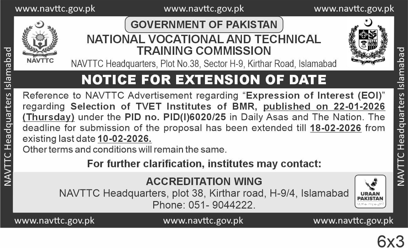 10011-Feb-26EOI Date Extension - Selection of TVET Institutes of BMRDownload